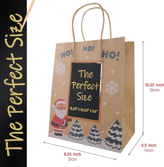 - FUN PRACTICAL DESIGNS! 3 different bag designs in each box (2 of each). These kraft bags with handles measure 5" deep x 8" wide x 10" bag height + 4" handle drop.