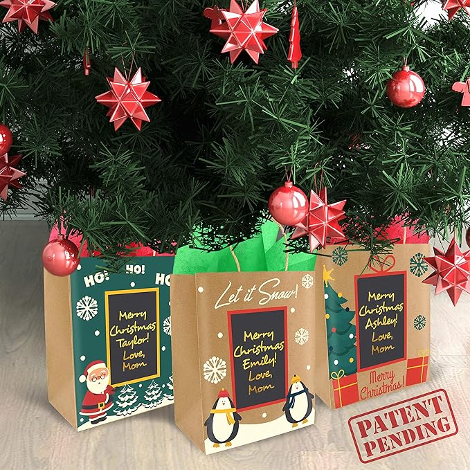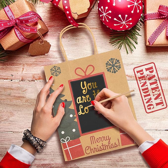 - ULTRA-UNIQUE BAGS! Patent-pending, novel festive Christmas gift bags that you won't find anywhere else will make your gift stand out from the rest - never worry about a lost gift tag or card when you've written your message right on the bag as scratch art!
