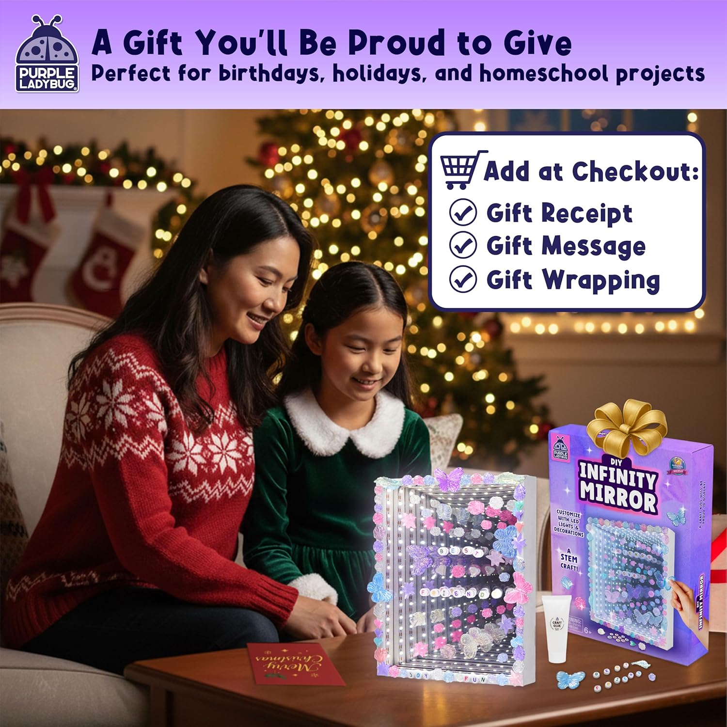 - A GIFT SHE'LL LOVE & YOU'LL BE PROUD TO GIVE! Looking for a gift that’s fun, creative, and impressive? The DIY Infinity Mirror Craft Kit is a hit for birthdays, holidays, homeschool science projects, or just-because surprises! It’s a one-of-a-kind keepsake kids will be proud to make and display, and parents love that it’s screen-free, confidence-building, and made to last.