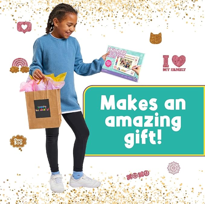 - Complete Decorate Your own Frame Craft Kit!! Our DIY kit has all you need to create a unique photo frame with bright, sparkling colors and varying textures. One white wood photo frame (that will hold a 4x6 or 5x7 photo), gold & pink glitter, foil transfers, and 2 sheets of awesome designs.