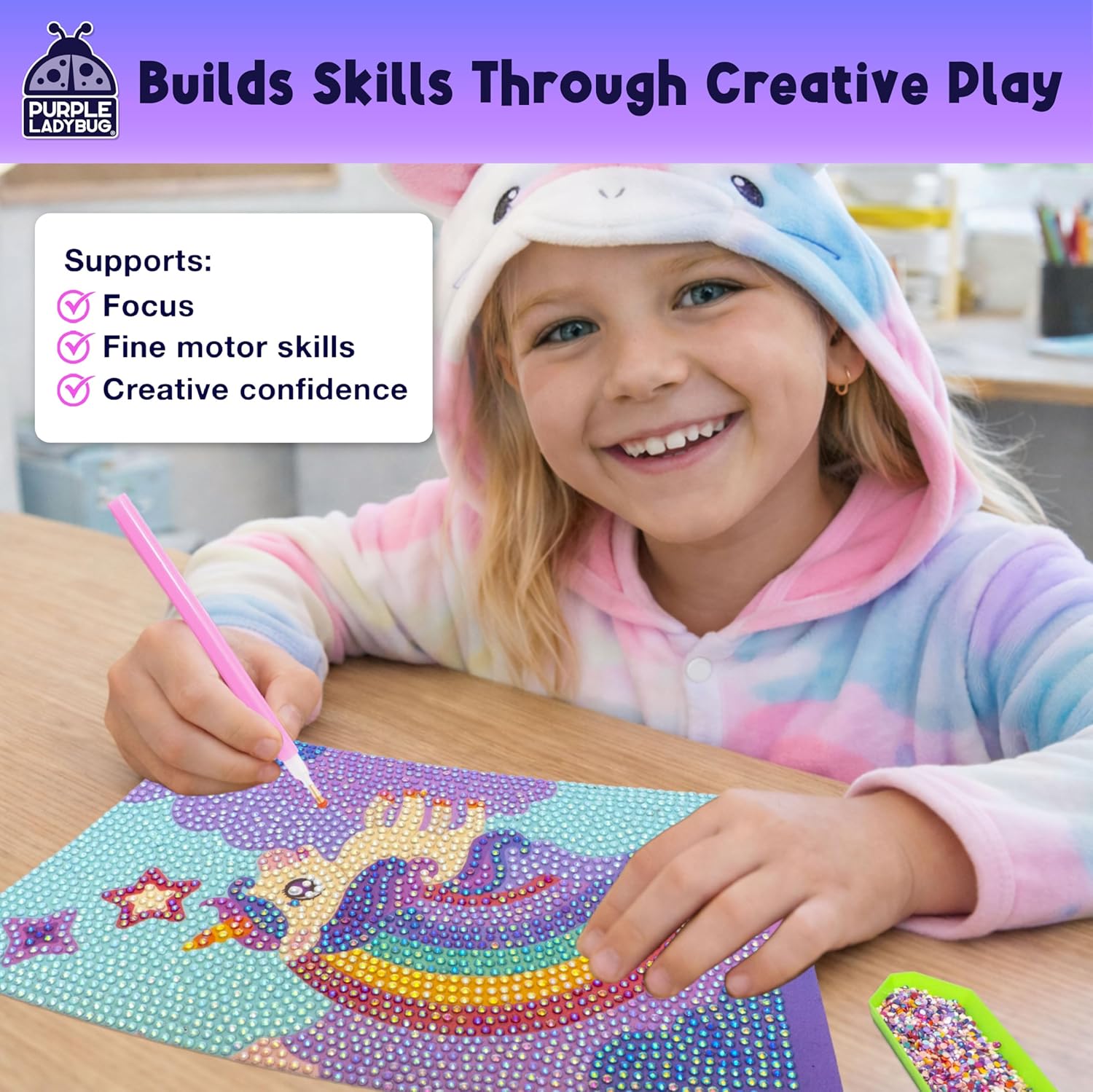 BUILDS SKILLS WHILE THEY CREATE & RELAX! As kids place each diamond, they strengthen fine motor skills, pincer grasp, hand-eye coordination, focus, patience, and creative confidence. The repeating placement pattern feels calming and rewarding, helping kids slow down, stay engaged, and enjoy self-expression.