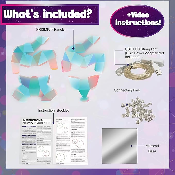 - What’s Included? Build-Your-Own Prismic™: Heart Lantern includes Prismic™ panels, connecting pins, USB-powered LED string lights, a mirrored base, and full step-by-step written instructions (video instructions also available). It has everything you need to create beautiful tabletop heart lantern arts and crafts for teenagers!