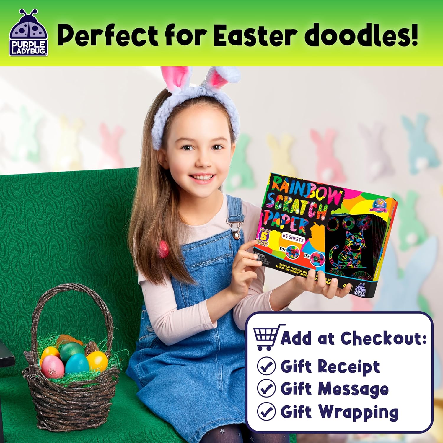 - TURN EVERY DOODLE INTO A MASTERPIECE! Our rainbow scratch paper art set, measuring 7.2" x 5" features 65 sheets of thick and high-quality scratch boards that won't easily tear when scratched - WOW! No more tiny or flimsy pages to worry about.