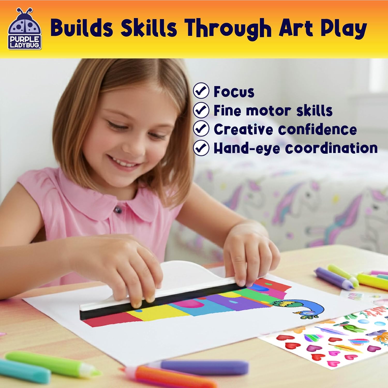 BUILD SKILLS THROUGH ART PLAY! As kids swipe paint, they strengthen fine motor skills, hand-eye coordination, focus, and creative confidence. With pre-printed designs and blank sheets, the kit encourages guided and open-ended creativity. Kids can follow the cute animal designs or let their imaginations run wild, creating their own unique artwork and expressing themselves freely.